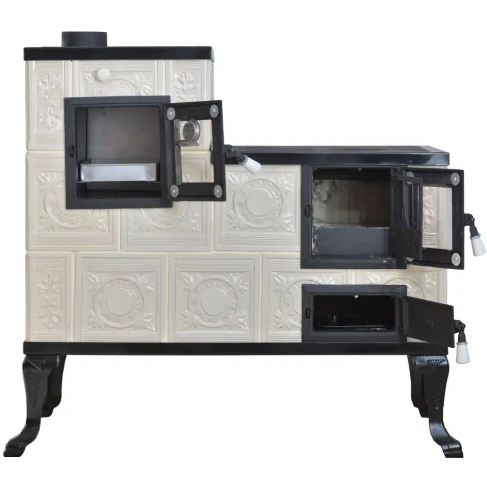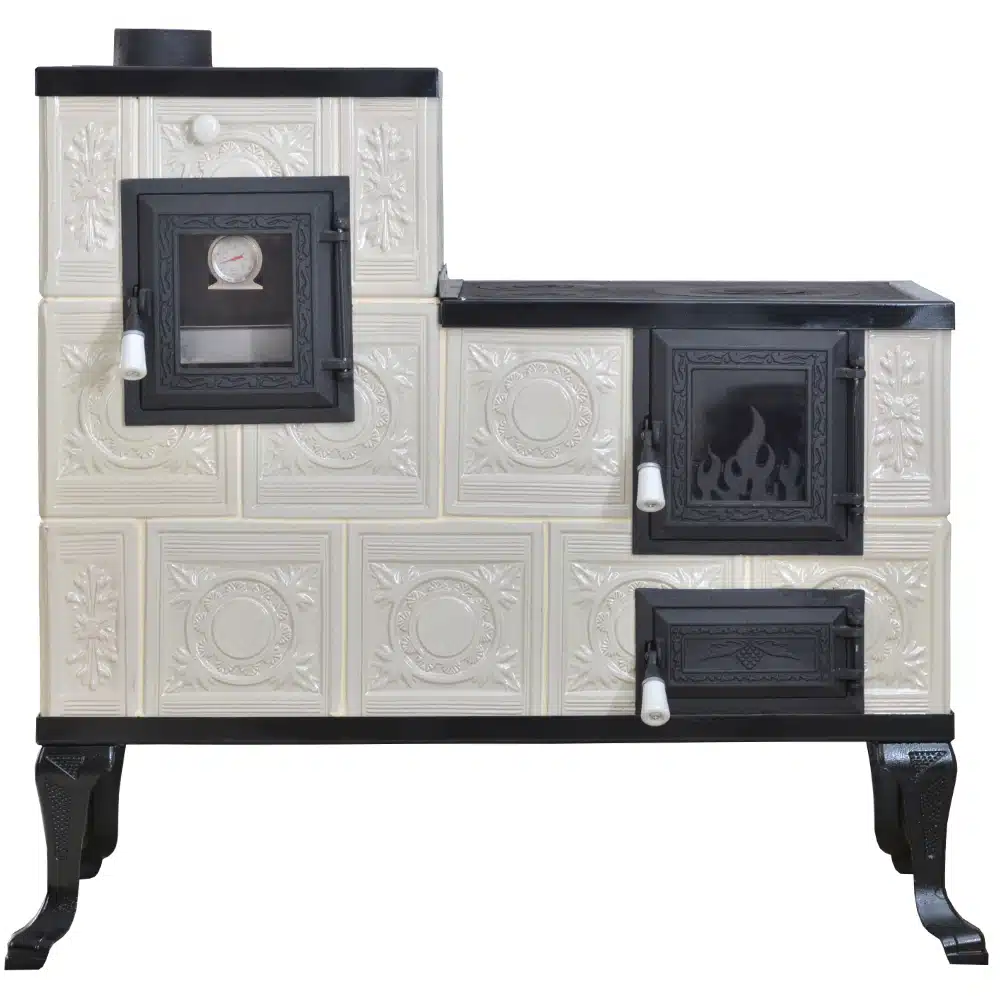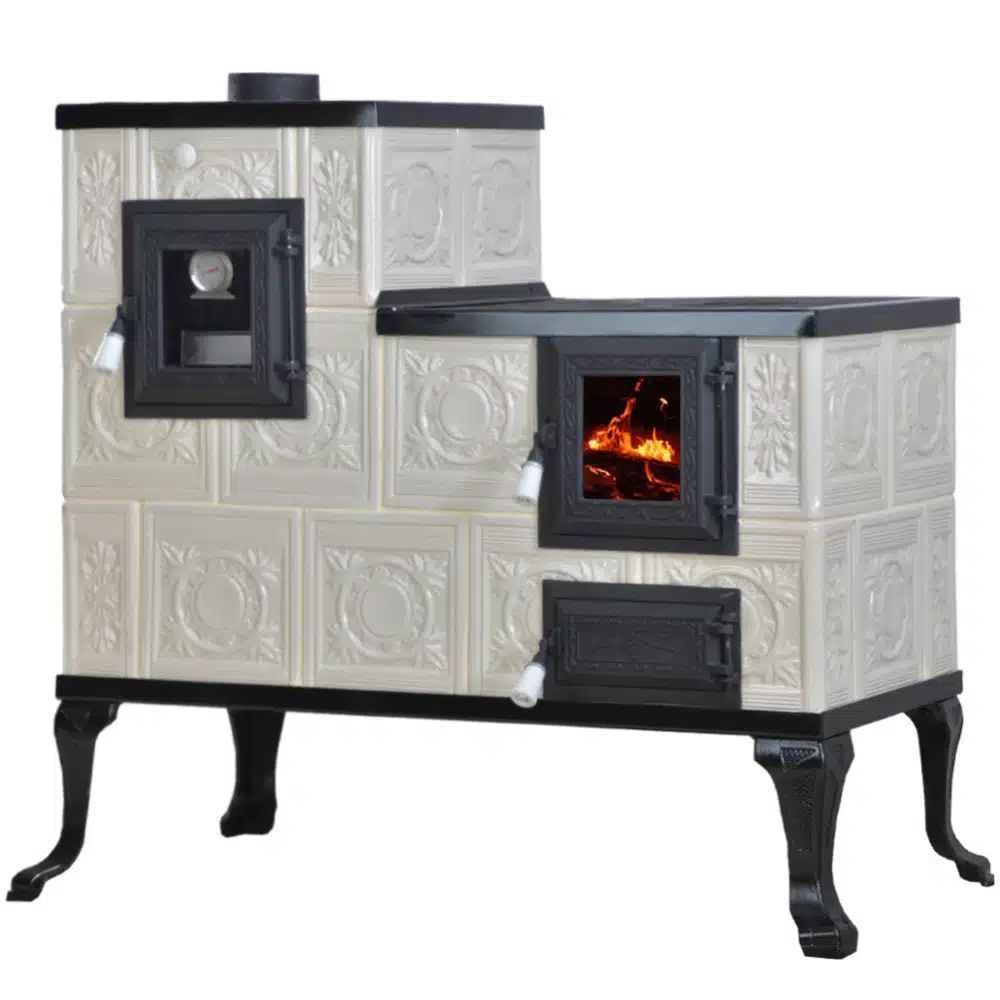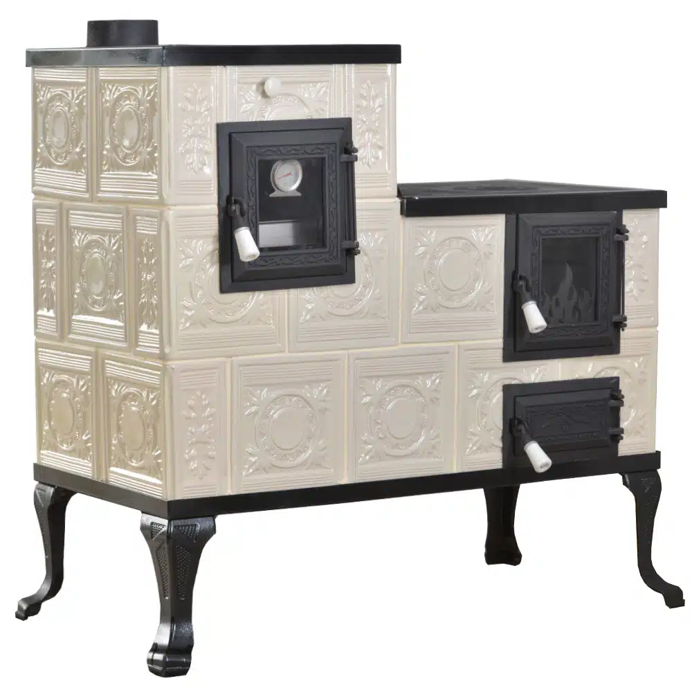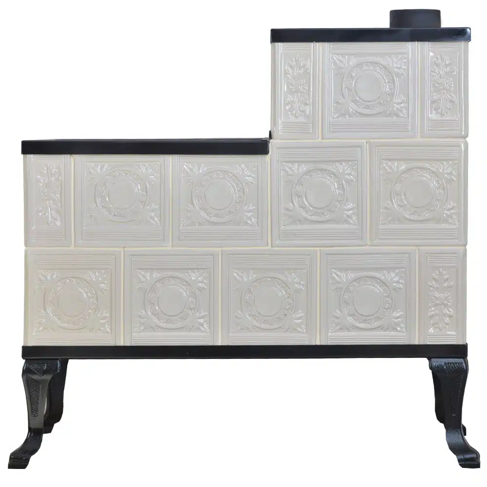 A cserépkályha fő jellemzője a lenyűgöző azték szín, ami eleganciát és meghittséget sugároz. Az ajtó hőálló üveggel ellátott, ami lehetővé teszi, hogy gyönyörködhessen a lángok látványában, miközben a kályha megbízhatóan és hatékonyan fűti a helyiséget. Az öntöttvas lábak és a cserép anyag kombinációja kiváló minőséget és tartósságot biztosít, így hosszú éveken át élvezheti a kályha előnyeit.