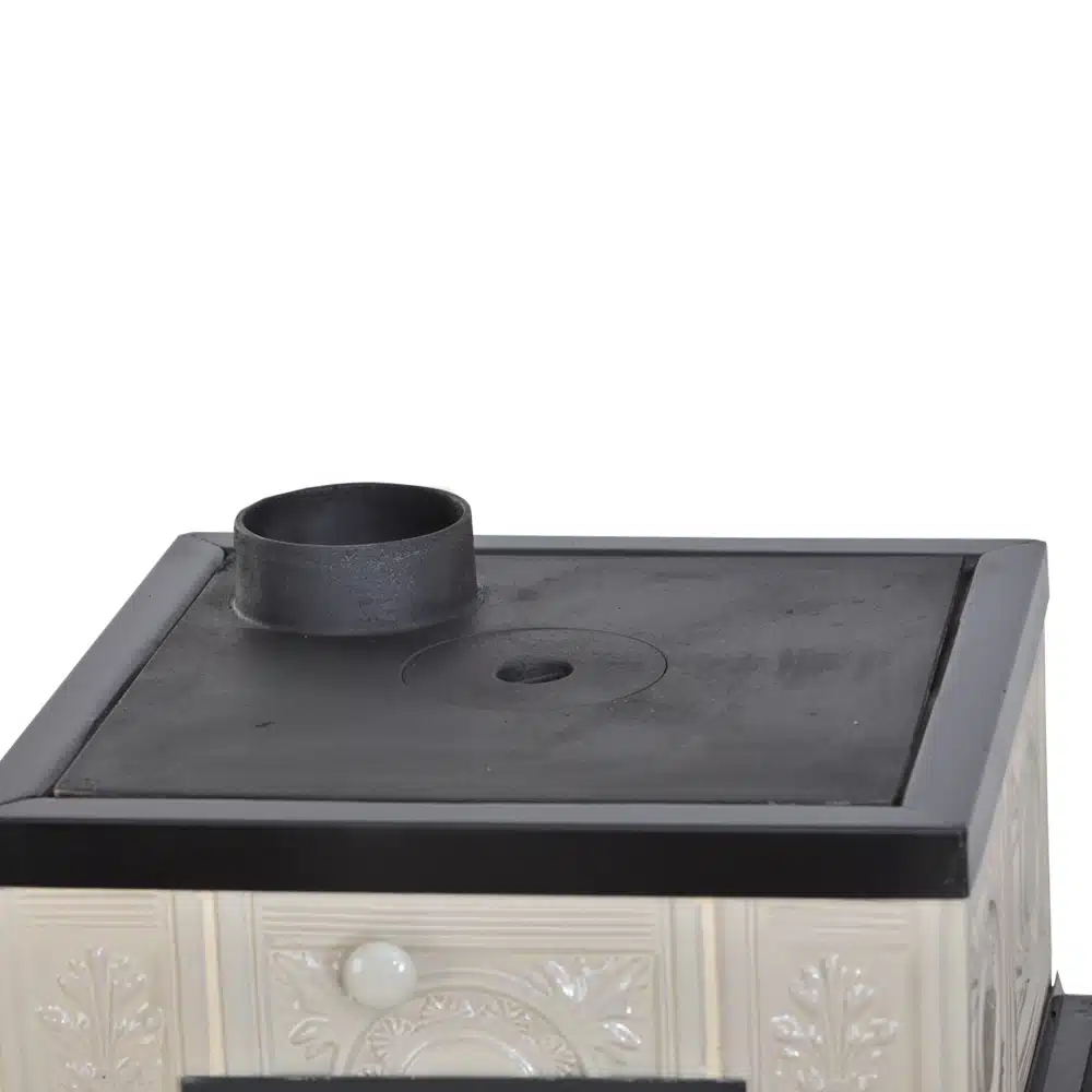 A kályha füstcsövének mérete 120 mm, ami lehetővé teszi a hatékony füstkivezetést és a tiszta égést. A bal és jobb oldalon elhelyezett füstkivezetési lehetőségek rugalmasan alkalmazkodnak a különböző helyiség elrendezésekhez, így könnyedén illeszthető a lakásához.