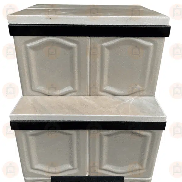 A cserépkályha minőségi öntvény ajtókkal és öntvény lábakkal készül, amelyek hosszú élettartamot és megbízhatóságot garantálnak. Az öntvény anyag használata a kályha stabilitását biztosítja, miközben hozzájárul az esztétikus megjelenéshez és a kiváló minőséghez.