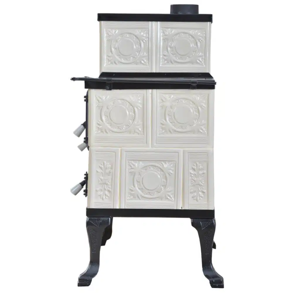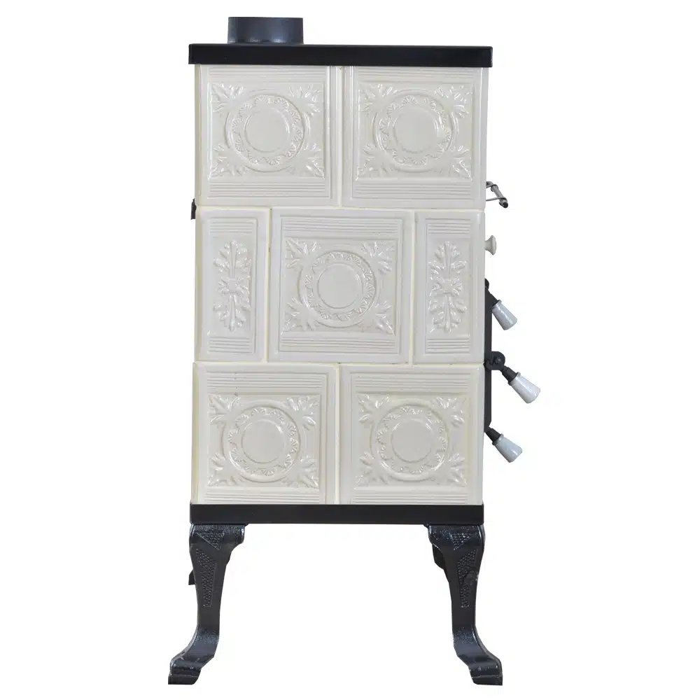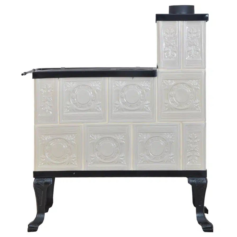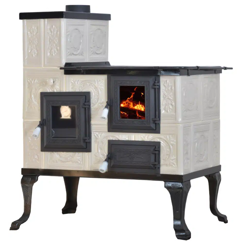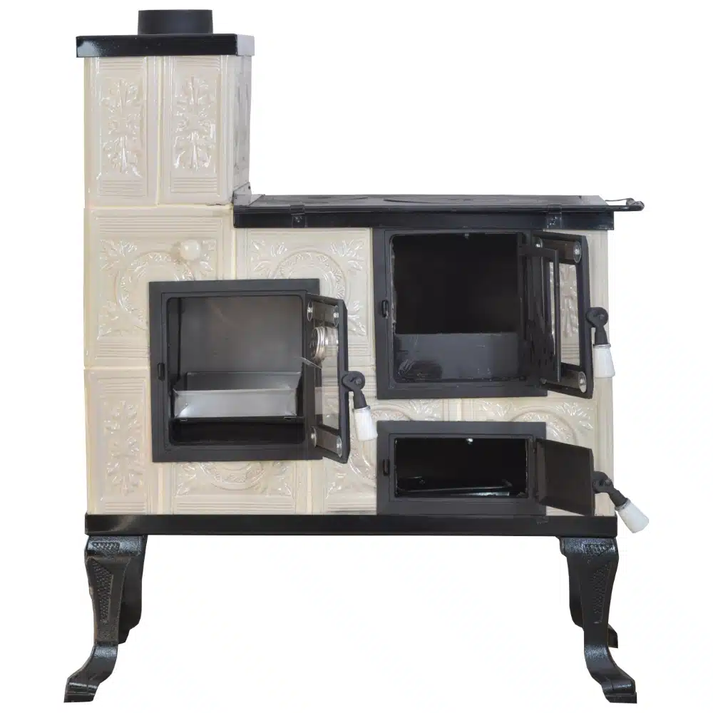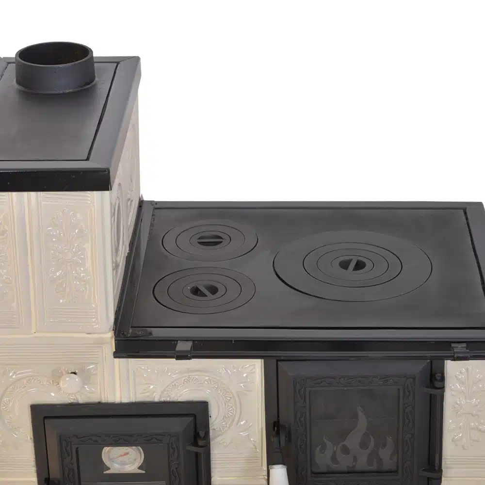 Az anyaghasználat a kályhán kiváló minőségű, beleértve az öntöttvas ajtót, főzőlapot, lábakat és a cserepet, amelyek garantálják a kályha tartósságát és hosszú élettartamát. Az Öntöttvas ajtó hőálló üveggel ellátott, így élvezhetjük a lángok látványát anélkül, hogy a hő elveszne.