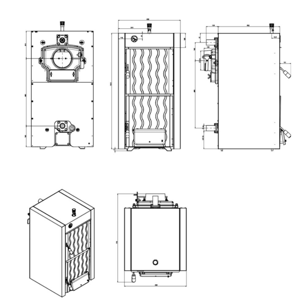 Centrala este compatibilă cu lemn, cărbune și brichete, oferind flexibilitate maximă în alegerea combustibilului. Poate fi integrată în sisteme de încălzire deschise sau închise.