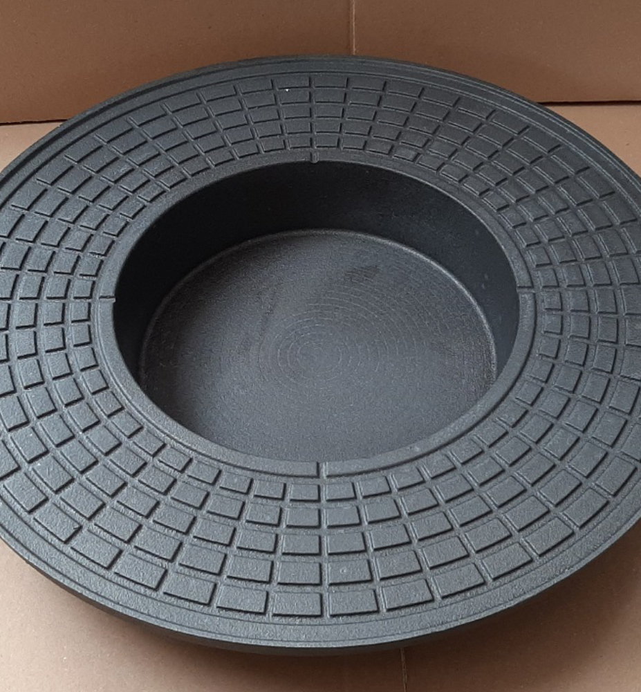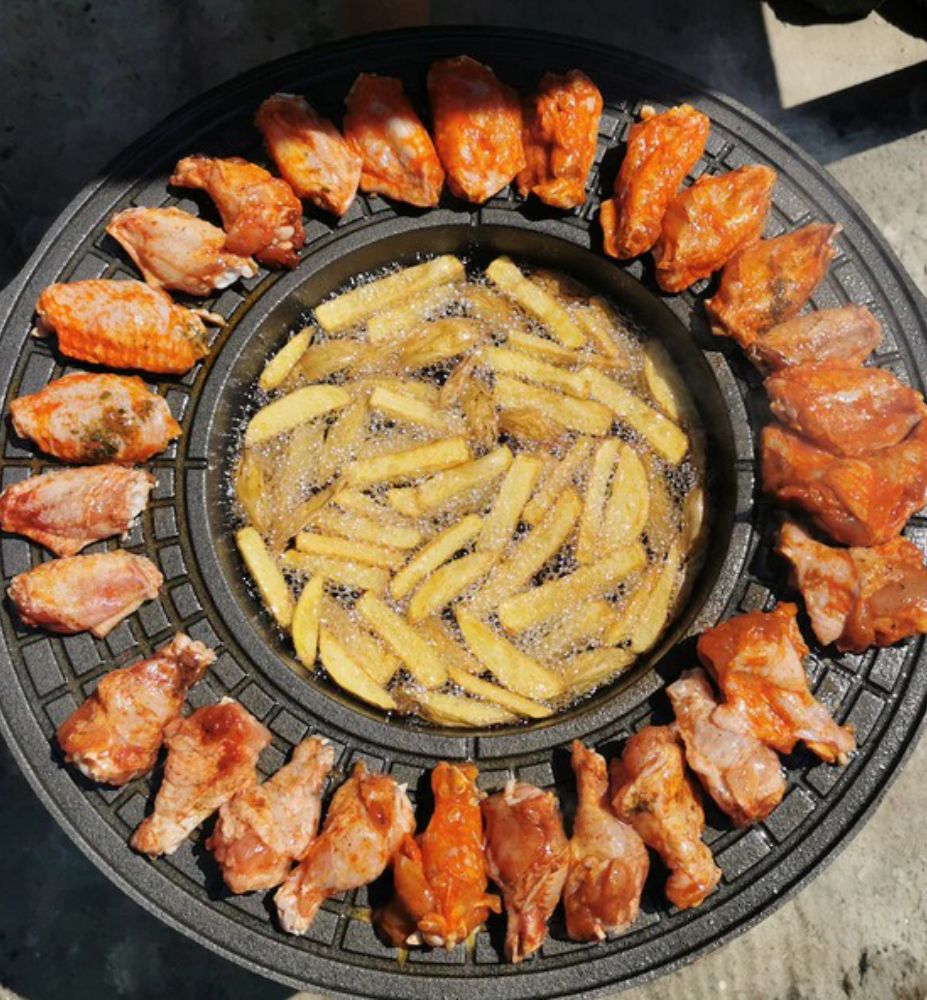 Descoperă Disc fonta adanc 49cm, alegerea perfectă pentru preparate delicioase în aer liber sau acasă. Acest disc plat de fontă cu diametru de 49 cm (57 cm cu mânere incluse) dispune de o „cratiță” în mijloc, ideală pentru prăjirea cartofilor sau cărnii. Diametrul zonei centrale este de 25,5 cm cu o adâncime de 6,5 cm, perfectă pentru cartofi prăjiți crocanți.