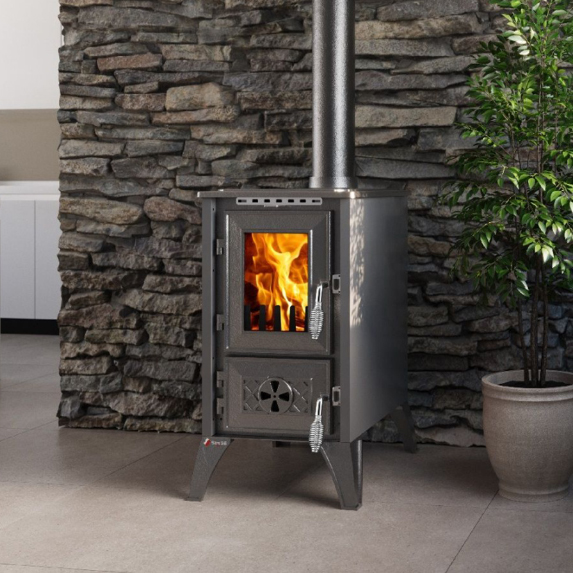 Dimensiunile compacte – 795 mm înălțime, 540 mm adâncime și 420 mm lățime – permit amplasarea ușoară chiar și în spații mai restrânse. Diametrul tubului de fum este de 130 mm, iar necesarul de tiraj este de doar 12 Pa, ceea ce facilitează instalarea. Ușa este prevăzută cu un sistem de etanșare eficient, care previne pierderile de căldură și crește siguranța în utilizare. Deși nu este dotat cu cuptor și nu permite conectarea la o sursă de aer extern, șemineul compensează prin robustețe și performanță.