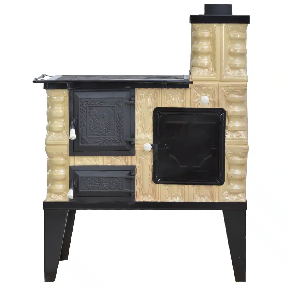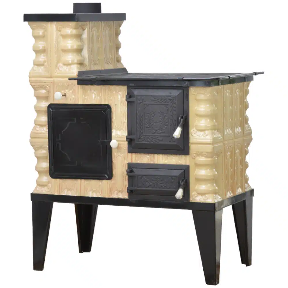 Sobă teracotă Crem Rustic tip cizmă – Experiența încălzirii cu lemne!