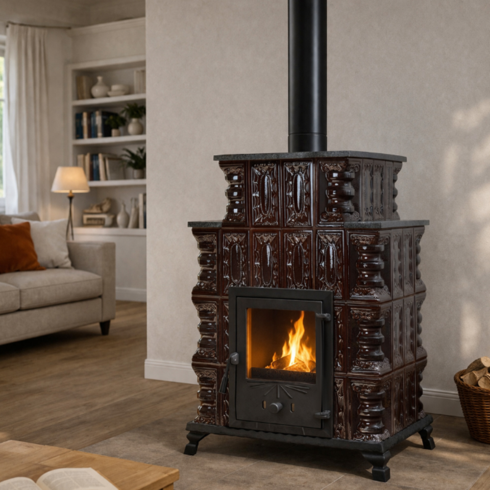 Sobă teracotă Lucifer Maro 4 rânduri – Experiența încălzirii cu lemne!