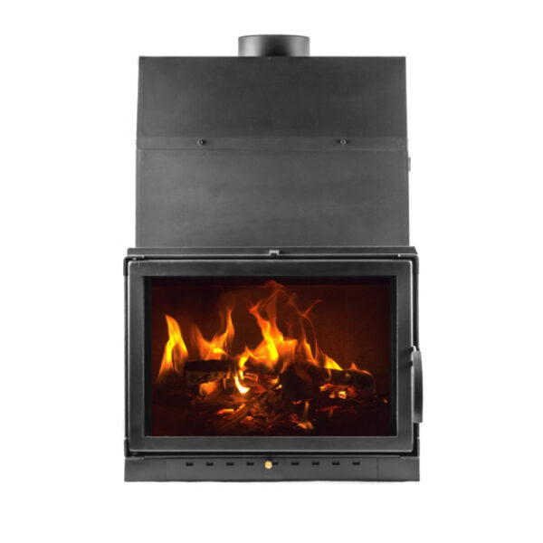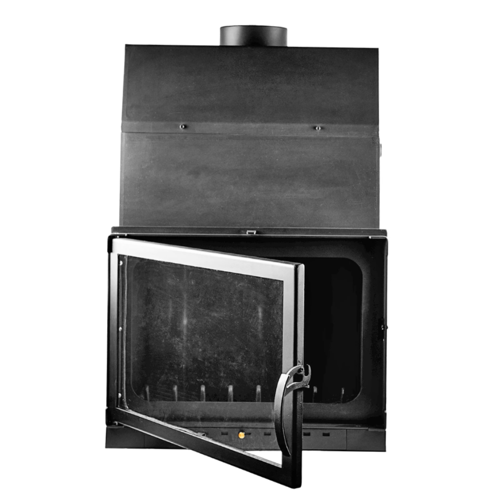 Focarul este căptușit cu plăci refractare din vermiculit, care păstrează temperatura ridicată și optimizează arderea. Ușa solidă din oțel este prevăzută cu sticlă termorezistentă până la 750°C, oferind siguranță și vedere plăcută asupra flăcării.