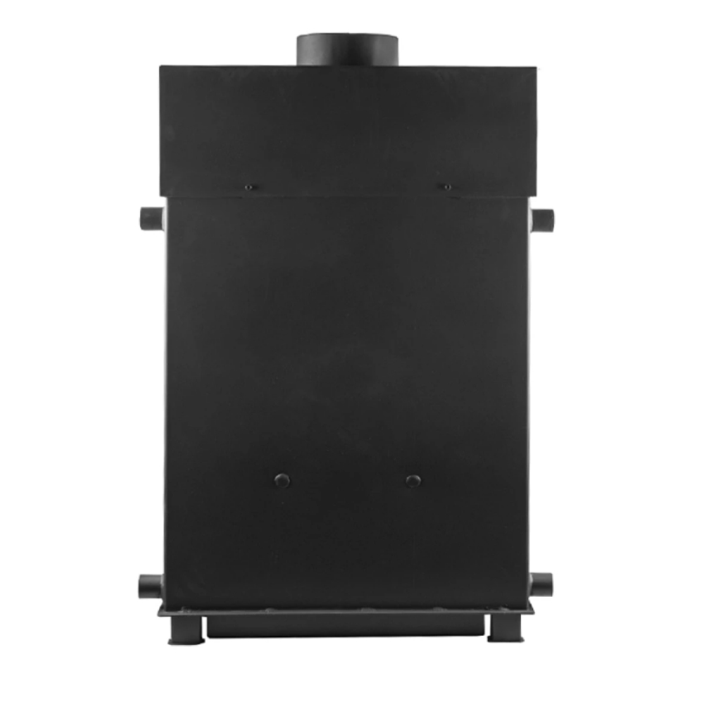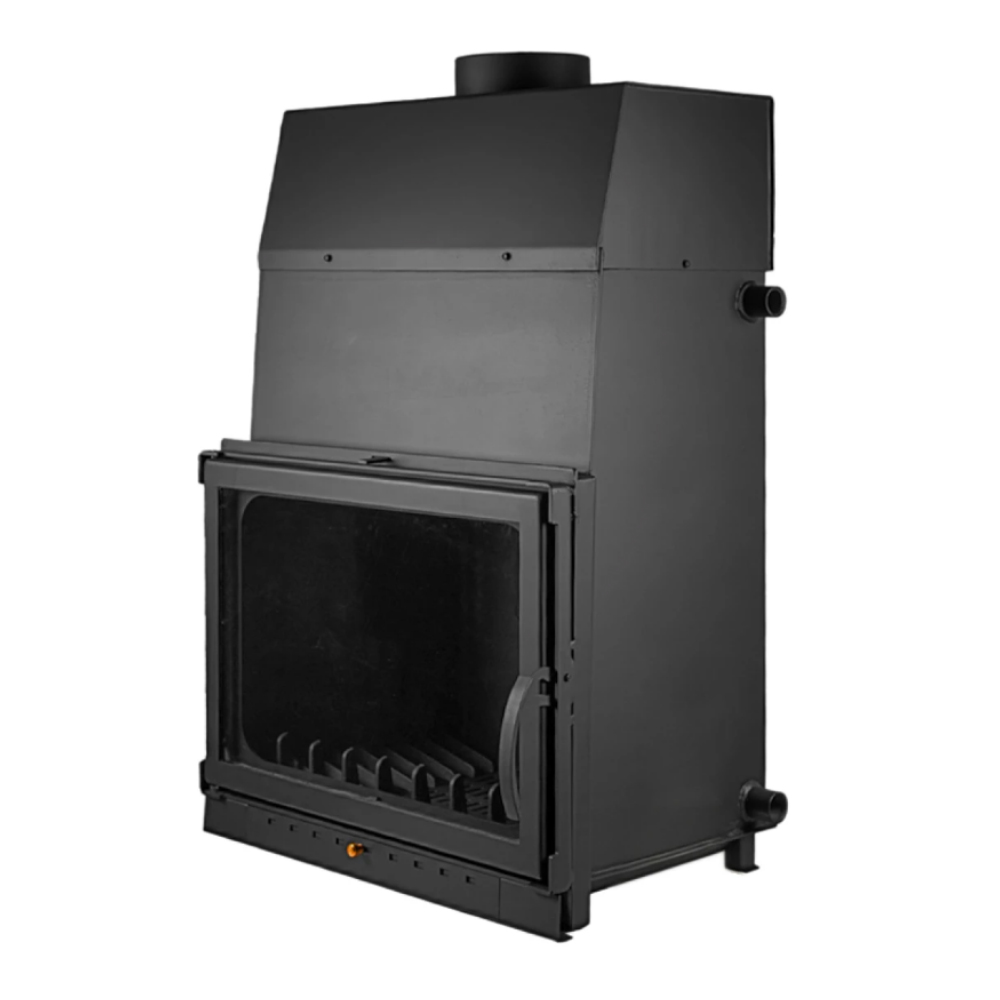 Camera de ardere este înconjurată pe trei laturi de mantaua de apă, ceea ce crește transferul termic și eficiența generală. Apa captează căldura produsă de foc și o distribuie în calorifere. Pentru autonomie mai mare, se recomandă utilizarea unui rezervor puffer.
