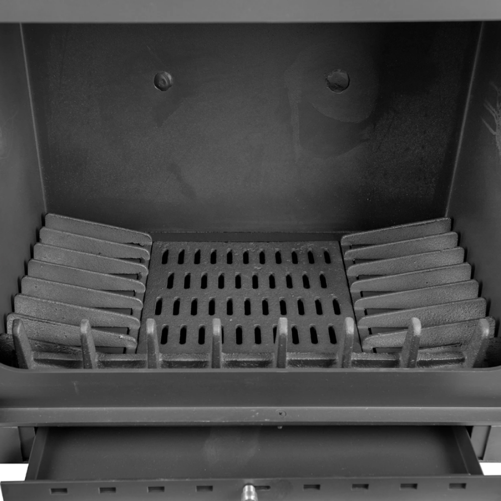 Cenușarul este dotat cu admisie de aer reglabilă, pentru control precis al arderii. Acest sistem ajută la consum redus și funcționare eficientă.